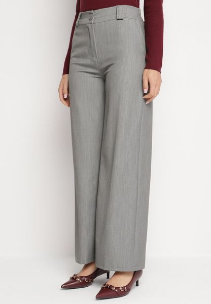 Szare Spodnie Garniturowe z Wiskozą z Szerokimi Nogawkami i Wysokim Stanem Attenna