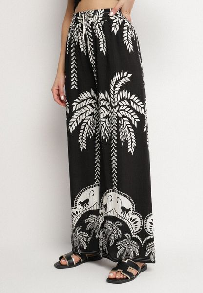 Czarne Wiskozowe Szerokie Spodnie z Wysokim Stanem z Palmami Bolritia