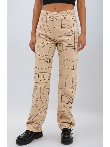 – wysokość pasa: high waist- fason: regular fit- krój nogawek: prosty- zapięcie: guzik i suwak- szlufki na pasek: tak- kieszenie: wpuszczane i tylne- wzór: na całości
