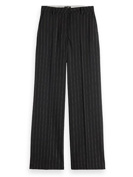 – wysokość pasa: high waist- szlufki na pasek: tak- zapięcie: haczyk i suwak- kieszenie: wpuszczane- detale: połyskująca nitka- krój: luźny- wzór: paski