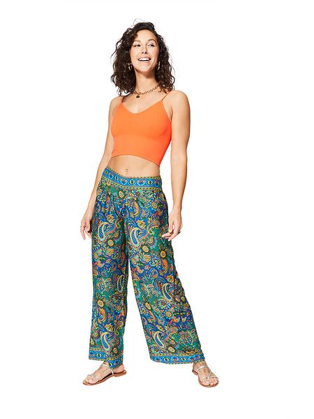 – pas / ściągacz: elastyczny- kieszenie: wpuszczane- zakończenia nogawek: dzwony- krój: prosty- wzór: orientalnyWskazówka: Na metkach odzieży tej marki znajdują się rozmiary francuskie. Rozmiarówka została przez nas przeliczona. Podane do wyboru warianty rozmiarów odpowiadają standardowym europejskim rozmiarom konfekcji. Prosimy zapoznać się z zamieszczonym objaśnieniem rozmiarów: