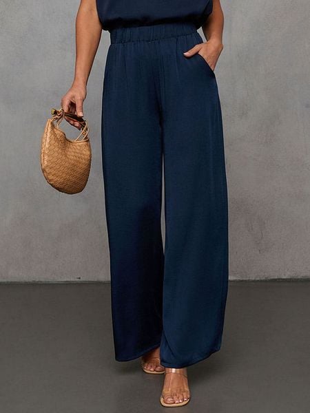 – wysokość pasa: high waist- pas / ściągacz: elastyczny- kieszenie: wpuszczane- krój: prosty- krój nogawek: szeroki- look: jednokolorowyUwaga: Przy wyborze właściwego wariantu zaleca się korzystanie z tabeli rozmiarów.