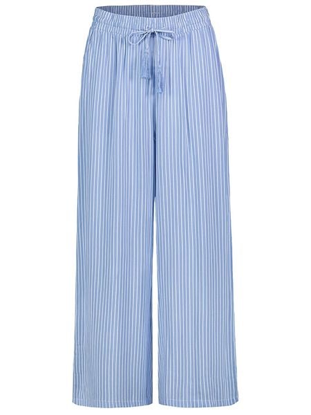 – czysta wiskoza- pas: ściągacz tunelowy- zakończenia nogawek: dzwony- krój: luźny- wzór: paski