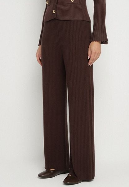 Brązowe Szerokie Spodnie High Waist z Wiskozą z Gumką w Pasie Essica