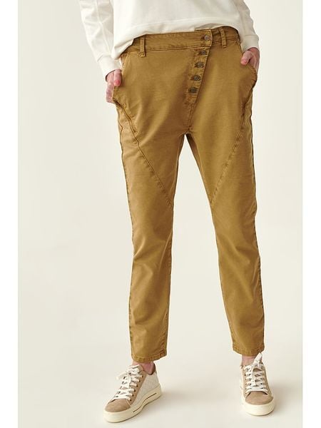– wysokość pasa: regular waist- fason: Boyfriend fit- krój nogawek: wąski- szlufki na pasek: tak- zapięcie: listwa guzikowa- kieszenie: wpuszczane, tylne- look: jednokolorowy