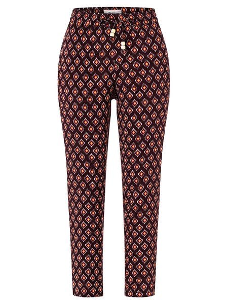 – czysta wiskoza- pas: ściągacz tunelowy- kieszenie: wpuszczane i tylne- długość nogawki: 7/8- krój: prosty- wzór: na całości