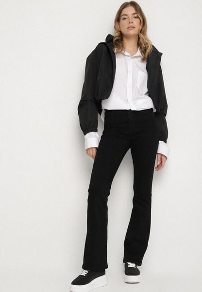 Czarne Jeansy o Kroju Dzwonów z Regularnym Stanem Fesarise