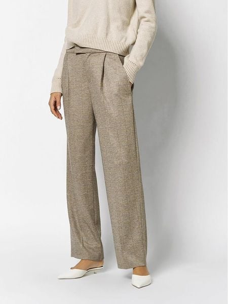 – wysokość pasa: high waist- fason: comfort fit- krój nogawek: szeroki- zapięcie: haczyk i suwak- kieszenie: wpuszczane- detale: kant- wzór: kratka