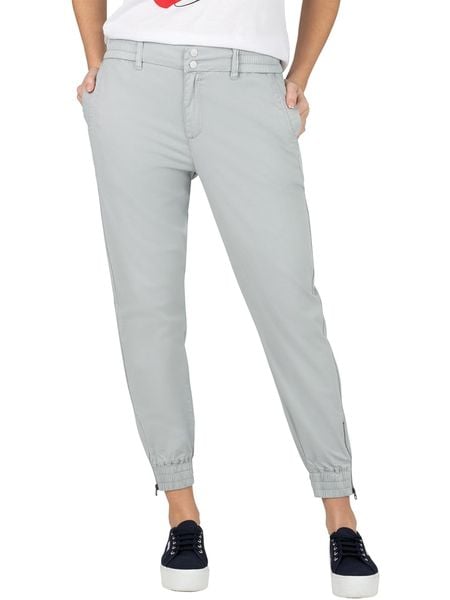 – wysokość pasa: regular waist- fason: Tapered fit- krój nogawek: wąski- szlufki na pasek: tak- pas / ściągacz: elastyczny- zapięcie: guziki i suwak- kieszenie: wpuszczane i tylne- zakończenia nogawek: elastyczne- długość nogawki: 7/8- look: jednokolorowy