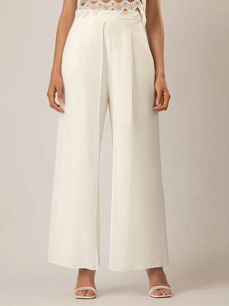 – wysokość pasa: high waist- zapięcie: suwak z tyłu- kieszenie: wpuszczane- krój: prosty- detale: ozdobna zakładka- look: jednokolorowy