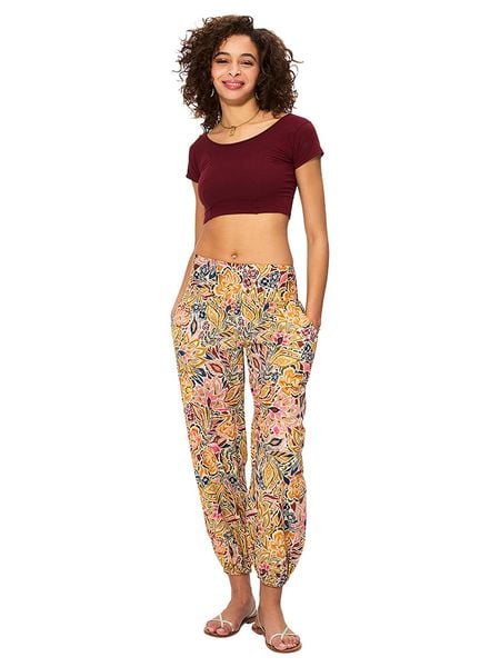 – czysta bawełna- wysokość pasa: high waist- pas / ściągacz: elastyczny- kieszenie: wpuszczane- zakończenia nogawek: elastyczne- długość nogawek: 7/8- fason: bombka- wzór: kwiatowyWskazówka: Na metkach odzieży tej marki znajdują się rozmiary francuskie. Rozmiarówka została przez nas przeliczona. Podane do wyboru warianty rozmiarów odpowiadają standardowym europejskim rozmiarom konfekcji. Prosimy zapoznać się z zamieszczonym objaśnieniem rozmiarów.