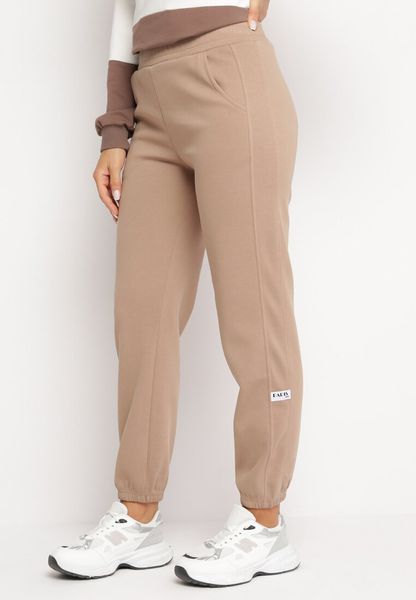 Beżowe Spodnie Dresowe z Gumką w Pasie Sterola