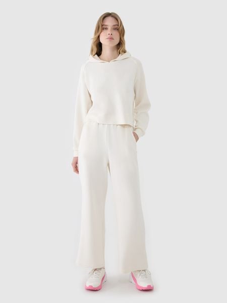 4F Spodnie dresowe z modalem z szerokimi nogawkami damskie – białe XXL