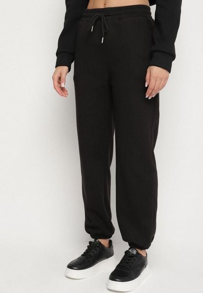Czarne Bawełniane Spodnie Dresowe ze Sznurkiem i Polarową Podszewką Saliavera