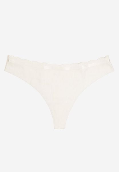 Białe Bawełniane Majtki Stringi z Prążkowanego Materiału Sesivia
