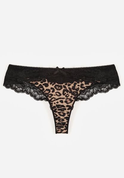 Czarno-Beżowe Majtki Typu Stringi z Koronką Nedareanes