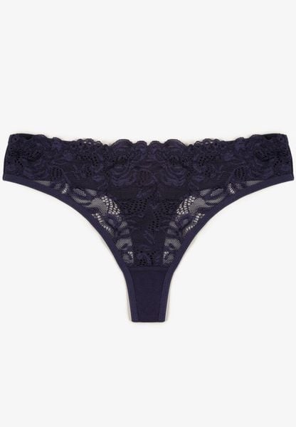 Granatowe Koronkowe Majtki Stringi z Bawełny Venalora