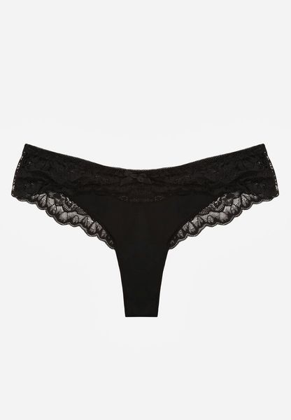Czarne Majtki Stringi Ozdobione Koronką Phisoris