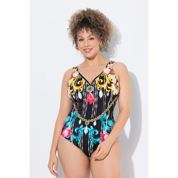 Plus size, Strój kąpielowy, barok, miękkie miseczki, głęboki dekolt w serek Ocena: Tags: Sporty Surfing Stroje kąpielowe Stroje kąpielowe damskie Stroje kąpielowe jednoczęściowe Kolor: Czarny Rozmiar: 50 XL/2XL Przeznaczenie: female Marka: ULLA POPKEN