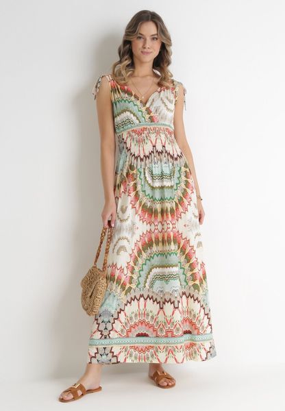 sukienki kopertowe sukienki bez kołnierzyka zielone sukienki sukienki z kopertowym dekoltem sukienki maxi sukienki bez rękawów odzież, obuwie, dodatki damskie born2be sukienki bez ramiączek sukienki rozkloszowane sukienki born2be