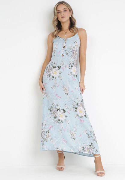 Jasnoniebieska Sukienka Maxi na Ramiączkach Philandia