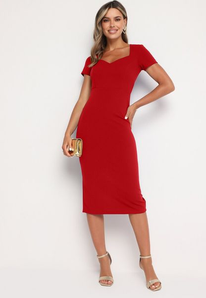 sukienki bez ramiączek sukienki kopertowe sukienki z krótkim rękawem odzież, obuwie, dodatki damskie born2be.pl sukienki ze sklepu born2be.pl sukienki bez kołnierzyka sukienki midi sukienki na co dzień czerwone sukienki sukienki born2be