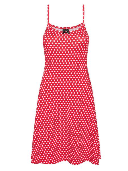 – z dodatkiem bawełny- ramiączka: wąskie- dekolt: okrągły- nadruk: graficzny- detale: przytwierdzone kokardki- krój: rozkloszowany- wzór: kropki