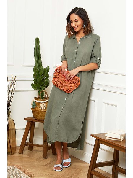 Le Monde du Lin Lniana sukienka w kolorze oliwkowym rozmiar: 40/42