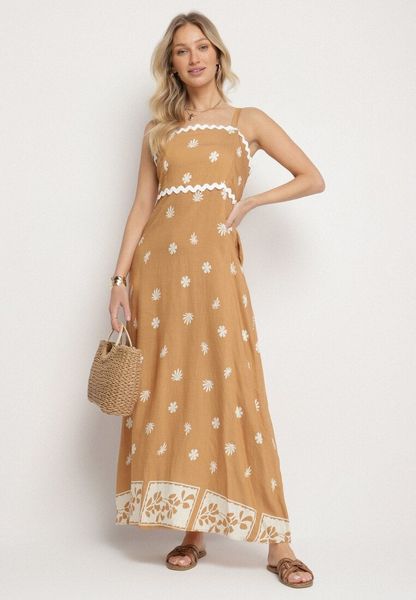 Brązowa Wiskozowa Sukienka z Geometrycznym Wzorem Lenirisa