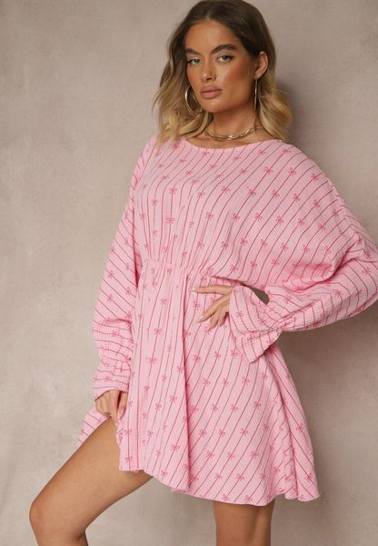 Fuksjowa Sukienka z Bawełny ze Wzorem Kokardek i Pasków Avelriti