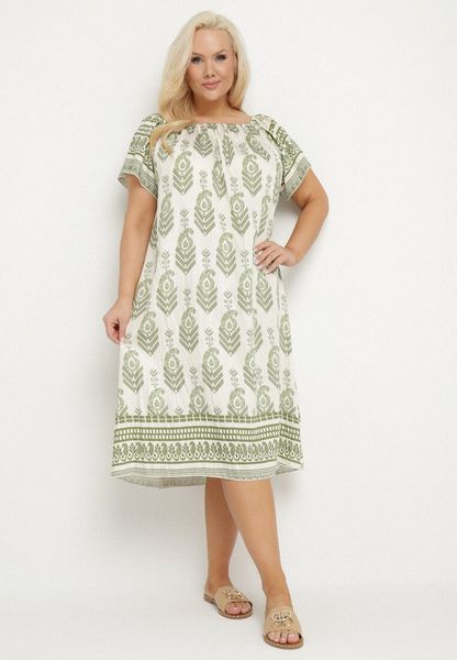 Zielona Wiskozowa Sukienka ze Wzorem Boho Ellivra