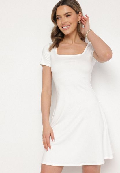 Biała Rozkloszowana Sukienka z Wiskozą i Kwadratowym Dekoltem Milirella
