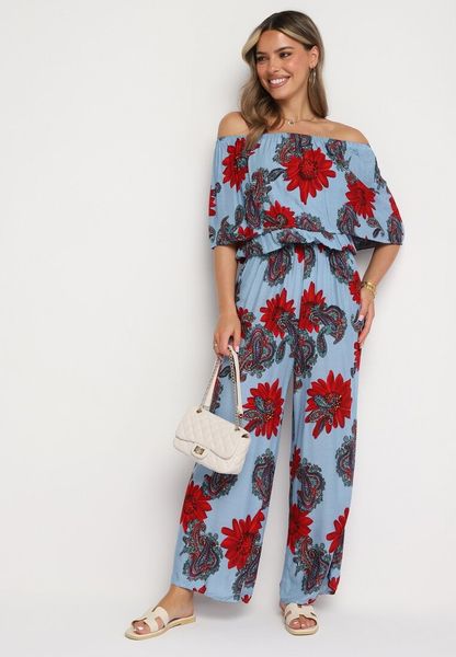 Niebiesko-Czerwony Taliowany Kombinezon z Wiskozy w Kwiaty Nelarra
