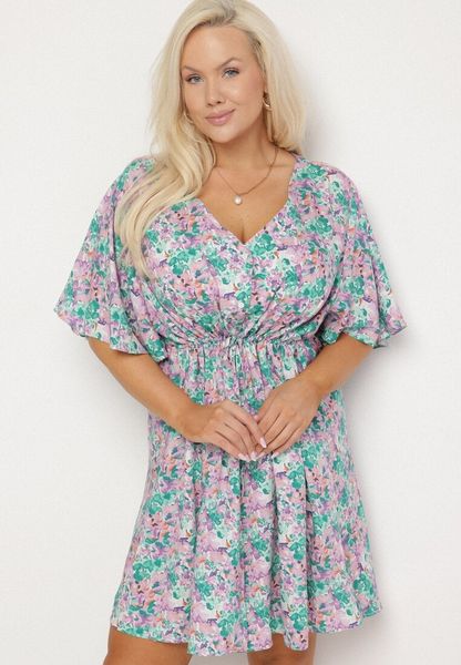 Fioletowa Sukienka z Wiskozy Ściągana w Talii w Kwiaty Liranette