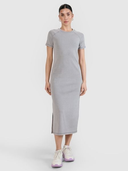 4F Sukienka midi z prążkowanej dzianiny damska – szara M