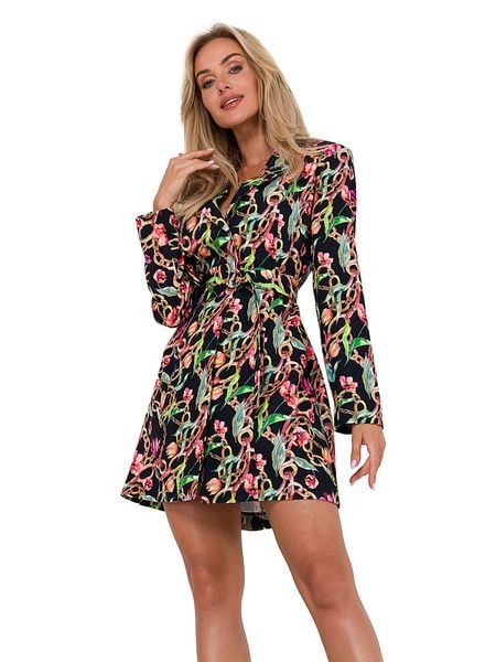 – kołnierzyk: z klapami- dekolt: V- przytwierdzony pasek: tkanina- krój: taliowany- wzór: na całości