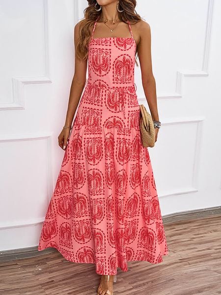 – ramiączka: na szyję- dekolt: karo- szlufki na pasek: tak- zdejmowany pasek: tkanina- krój: litera A- wzór: na całości