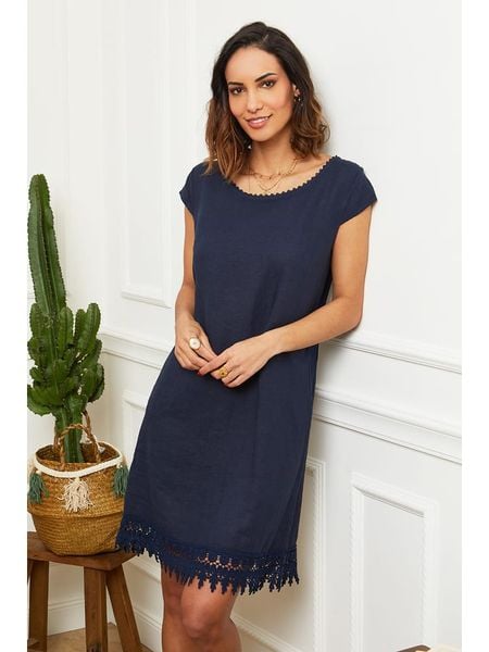 sukienki ze sklepu limango.pl niebieskie sukienki sukienki bez ramiączek sukienki z okrągłym kołnierzem sukienki bez rękawów sukienki na co dzień odzież, obuwie, dodatki damskie le monde du lin sukienki bez kołnierzyka sukienki le monde du lin odzież, obuwie, dodatki damskie limango.pl