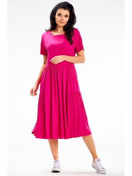 sukienki awama sukienki maxi sukienki z okrągłym kołnierzem sukienki ze sklepu limango.pl różowe sukienki sukienki bez ramiączek odzież, obuwie, dodatki damskie limango.pl sukienki z falbankami sukienki bez kołnierzyka sukienki bez rękawów