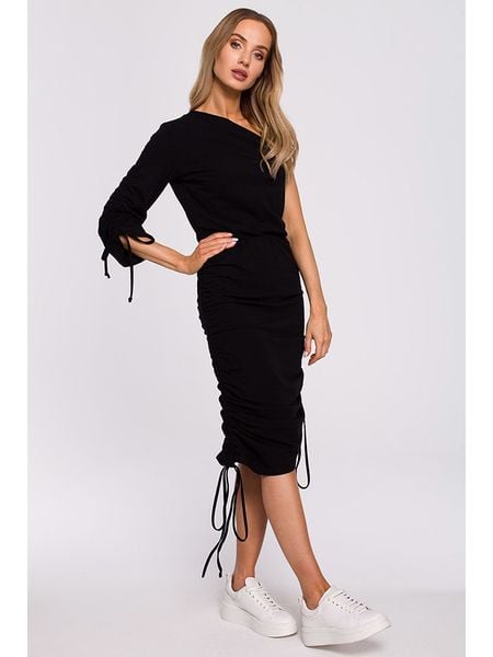 – krój rękawów: na jedno ramię- detale: marszczenia- krój: wąski- look: jednokolorowy