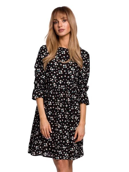 – czysta wiskoza- dekolt: łódka- długość rękawa: 3/4- ściągacz: zakończenia rękawów- krój: litera A- wzór: kwiatowy