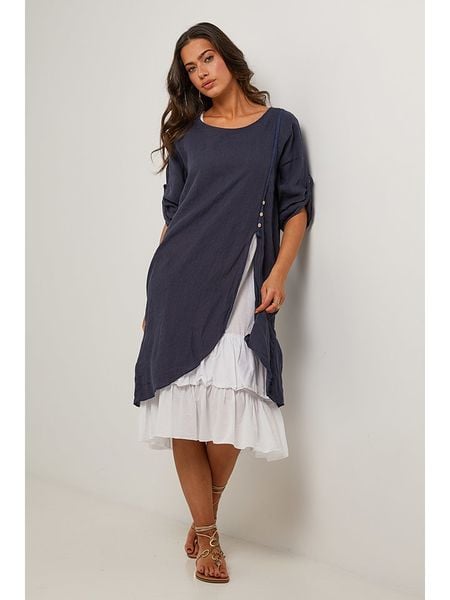 – czysty len- dekolt: łódka- zakończenie rękawów: patka i guzik- zintegrowana halka: tak- detale: ozdobne guziki- krój: prosty- look: jednokolorowyUwaga: Na metkach odzieży tej marki znajdują się rozmiary francuskie. Rozmiarówka została przez nas przeliczona. Podane do wyboru warianty rozmiarów odpowiadają standardowym europejskim rozmiarom konfekcji. Prosimy zapoznać się z zamieszczonym objaśnieniem rozmiarów.