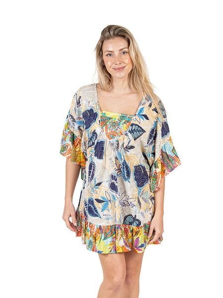 – czysta bawełna- dekolt: karo- krój rękawów: rozszerzany do dołu- dolny brzeg: z falbankami- krój: prosty- wzór: na całości