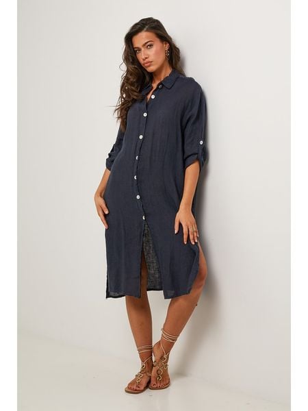 odzież, obuwie, dodatki damskie le monde du lin sukienki bez rękawów sukienki le monde du lin odzież, obuwie, dodatki damskie limango.pl sukienki bez kołnierzyka sukienki midi sukienki z klasycznym kołnierzykiem sukienki ze sklepu limango.pl niebieskie sukienki sukienki bez ramiączek