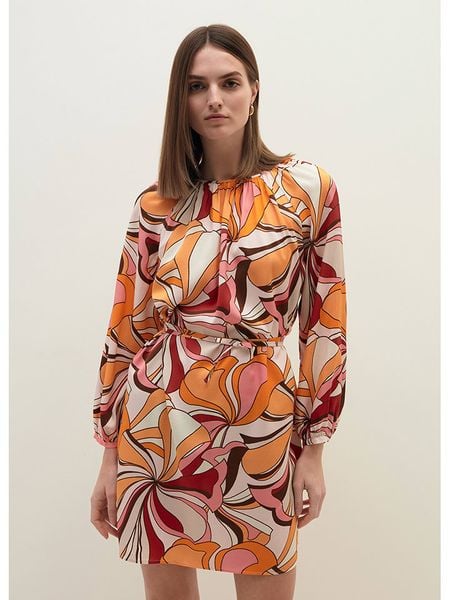 – czysta wiskoza- dekolt: okrągły- zdejmowany pasek: tkanina- krój: taliowany- wzór: na całości