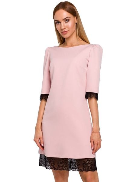 – dekolt: łódka- zapięcie: suwak na plecach- rękaw: bufiasty – długość rękawa: 3/4- detale: koronka- krój: taliowany – look: jednokolorowy
