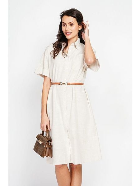 sukienki bez rękawów sukienki bez kołnierzyka sukienki z klasycznym kołnierzykiem sukienki midi sukienki bez ramiączek sukienki na co dzień brązowe sukienki sukienki le jardin du lin sukienki proste sukienki ze sklepu limango.pl