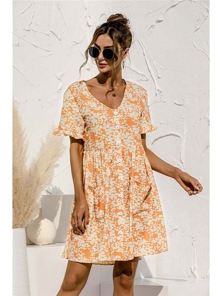 – dekolt: V- kieszenie: naszyte- detale: ozdobne guziki- krój: luźny- wzór: kwiatowy