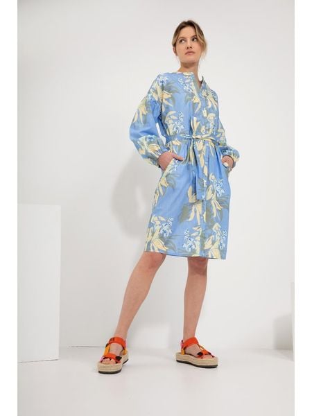 – czysta bawełna- dekolt: okrągły- zapięcie: listwa guzikowa- zdejmowany pasek: tkanina- kieszenie: wpuszczane- krój: prosty- wzór: na całości