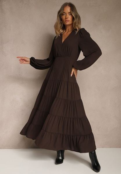 Brązowa Kopertowa Sukienka Vices o Rozkloszowanym Kroju Resvima